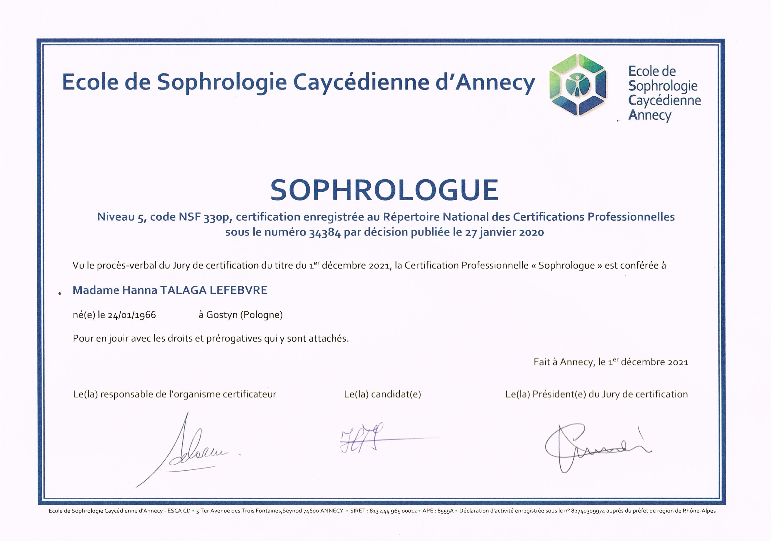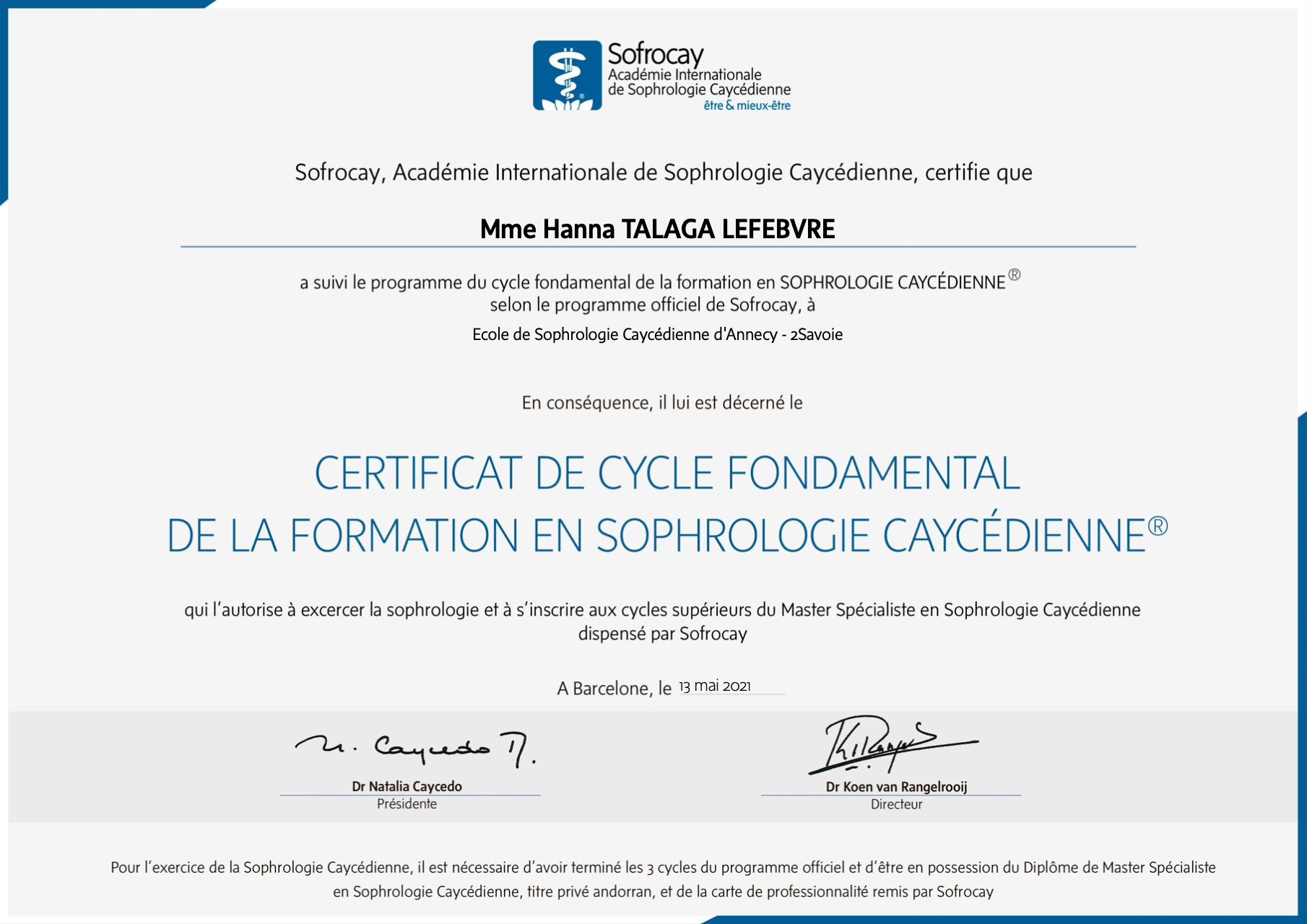 2021- Certificat de cycle fondamental de la formation en sophrologie caycédienne à l'école de sophrologie caycédienne d'Annecy